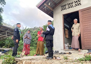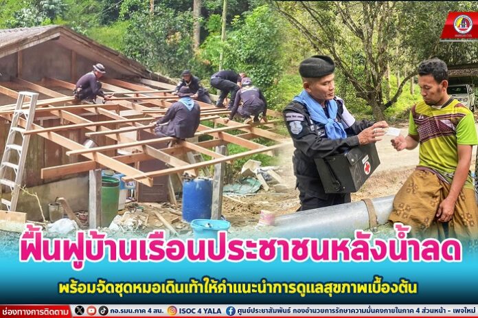 นอกจากนี้ กองร้อยทหารพรานที่ 3305 หน่วยเฉพาะกิจกรมทหารพรานที่ 33 จัดกำลังพล ชุดหมอเดินเท้า ลงพื้นที่เข้าพบปะเยี่ยมเยียนประชาชน พร้อมให้คำแนะนำการดูแลสุขภาพ และแจกจ่ายยาสามัญประจำบ้านให้กับประชาชนที่ได้รับผลกระทบจากเหตุอุทกภัย ภายหลังน้ำลด ในพื้นที่ บ้านบายิ หมู่ที่ 4 ตำบลตลิ่งชัน อำเภอบันนังสตา จังหวัดยะลา