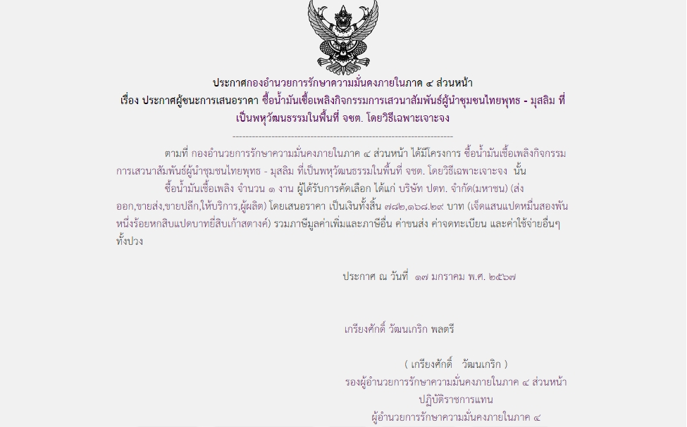 จัดซื้อ จัดจ้างประกาศผู้ชนะการเสนอราคา ประกาศผู้ชนะการเสนอราคา ซื้อน้ำมันเชื้อเพลิงกิจกรรมการเสวนาสัมพันธ์ผู้นำชุมชนไทยพุทธ – มุสลิม ที่เป็นพหุวัฒนธรรมในพื้นที่ จชต. โดยวิธีเฉพาะเจาะจง January 17, 2024 301 Share Facebook Twitter Google+ Telegram LINE