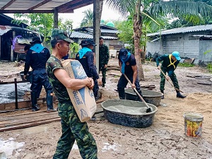 วันที่ 23 มกราคม 2567 ที่บ้านเลขที่ 33/9 หมู่ที่ 1 ตำบลตะโละแมะนา อำเภอทุ่งยางแดง จังหวัดปัตตานี หน่วยเฉพาะกิจกรมทหารพรานที่ 44 จัดกำลังพลชุดปฏิบัติการเสริมสร้างความเข้าใจ ร่วมกับ ส่วนราชการต่างๆ และพี่น้องประชาชนในพื้นที่ เข้าให้การช่วยเหลือประชาชนโดยการสร้างบ้านพักอาศัยให้กับ นางสาว ยาวารี สาแลแม ซึ่งเป็นผู้ได้รับผลกระทบจากสถานการณ์อุทกภัยในห้วงที่ผ่านมา เพื่อเป็นการช่วยเหลือและบรรเทาความเดือดร้อนให้กับพี่น้องประชาชนในพื้นที่รับผิดชอบของหน่วย ตลอดจนเพื่อเป็นการสร้างความสัมพันธ์อันดีระหว่างประชาชนภายในชุมชน กับเจ้าหน้าที่รัฐ รวมถึงยังเป็นการสร้างความเชื่อมั่นให้กับพี่น้องประชาชนในด้านการพัฒนาคุณภาพชีวิตให้ดียิ่งขึ้น ภายใต้คำกล่าวที่ว่า “ทหารเป็นที่พึ่งของประชาชนในทุกโอกาส”