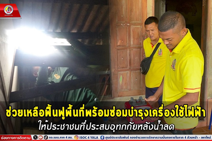 เมื่อวันที่ 23 มกราคม 2567 เวลา 15.00 น. ในพื้นที่ อำเภอรือเสาะ จังหวัดนราธิวาส พันเอก สิทธิชัย บำรุงเขต ผู้บังคับหน่วยเฉพาะกิจกรมทหารพรานที่ 46 จัดกำลังพลจิตอาสาพระราชทาน ร่วมกับผู้นำท้องที่, ผู้นำท้องถิ่น และประชาชนจิตอาสา ดำเนินการจัดกิจกรรมจิตอาสาพัฒนาทำความสะอาดฟื้นฟูอาคารสถานที่,บ้านเรือน, ซ่อมแซมบ้านเรือน และเครื่องใช้ไฟฟ้า ให้กับประชาชนที่ได้รับผลกระทบจากอุทกภัยหลังน้ำลดห้วงที่ผ่านมา โดยเจ้าหน้าที่ได้ทำการซ่อมแซมฟื้นฟูบ้านเรือนประชาชน จำนวน 1 หลัง และซ่อมเครื่องใช้ไฟฟ้า จำนวน 1 เครื่อง เพื่อช่วยเหลือบรรเทาความเดือดร้อนให้ประชาชนสามารถกลับมาใช้ชีวิตอย่างปกติสุข ซึ่งหลังน้ำลดทางเจ้าหน้าที่ทุกพื้นที่จะเร่งเข้าช่วยเหลือฟื้นฟูบ้านเรือนของประชาชนที่ประสบอุทกภัยอย่างต่อเนื่อง “เพราะทหารจะอยู่เคียงข้างประชาชน และเป็นที่พึ่งของประชาชนในทุกโอกาส”