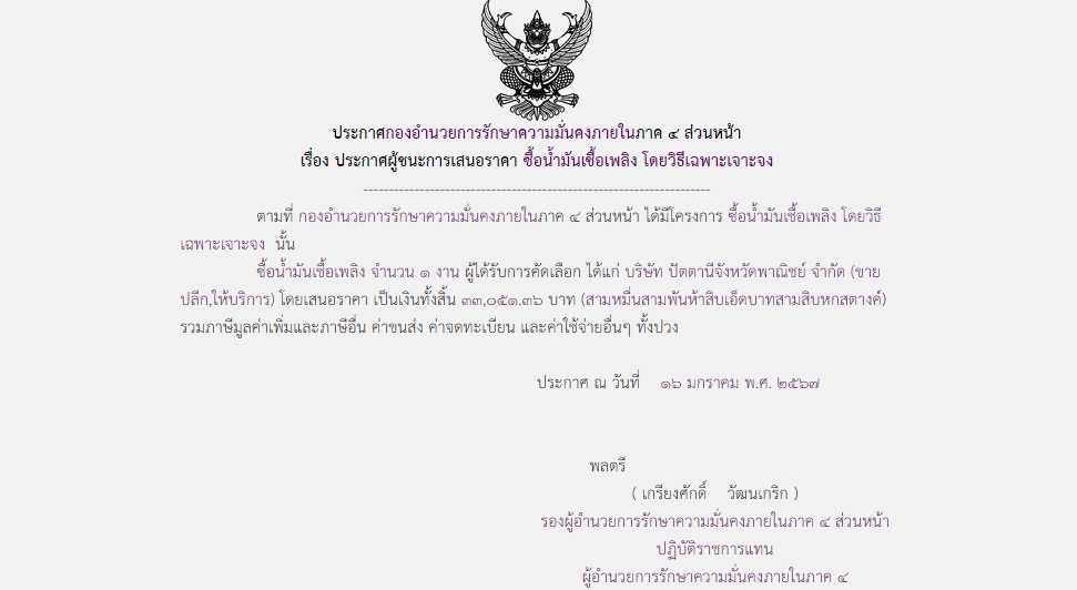 จัดซื้อ จัดจ้างประกาศผู้ชนะการเสนอราคา ประกาศผู้ชนะการเสนอราคา ซื้อน้ำมันเชื้อเพลิง โดยวิธีเฉพาะเจาะจง January 25, 2024 451 Share Facebook Twitter Google+ Telegram LINE