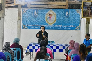 จากนั้น พันเอกหญิง ณัฐฐ์จิตน์ วัยวุฒิ ได้เดินทางไปยังวัดกุหร่า ตำบลเปียน อำเภอสะบ้าย้อย จังหวัดสงขลา เพื่อถวายสังฆทาน และถวายภัตตาหารเพล แด่พระสงฆ์ เนื่องในวันพระ ร่วมกับพี่น้องประชาชนชุมชนไทยพุทธบ้านสวนโอน เป็นการส่งเสริมให้ปฏิบัติตนตามแบบพุทธศาสนิกชนที่ดี สวดมนต์ไหว้พระ รักษาศีลในวันธรรมสวนะ เห็นคุณค่าของหลักธรรมคำสอนของพระพุทธเจ้า และนำหลักธรรมปรับใช้ในชีวิตประจำวันได้อย่างถูกต้องและเหมาะสม จากนั้นได้พบปะเยี่ยมเยียนพี่น้องประชาชนชุมชนบ้านสวนโอน และ ชุมชนบ้านควนหรันใต้ ในโอกาสนี้ได้พบปะ พูดคุย รับทราบปัญหาข้อขัดข้อง และสอบถามความต้องการของพี่น้องประชาชนในพื้นที่ ซึ่งทั้ง 2 ชุมชนมีพี่น้องไทยพุทธ และไทยมุสลิมอาศัยอยู่ร่วมกันแบบพหุวัฒนธรรม ช่วยเหลือซึ่งกันและกัน ดำเนินชีวิตตามหลักปรัชญาเศรษฐกิจพอเพียง ส่งเสริมการท่องเที่ยวเชิงนิเวศน์ แบบอนุรักษ์วัฒนธรรม ตลอดจน เพื่อนำข้อมูลที่ได้ ไปพัฒนาต่อยอด ในการวางแผนงาน /โครงการในงบประมาณ 2568 ต่อไป