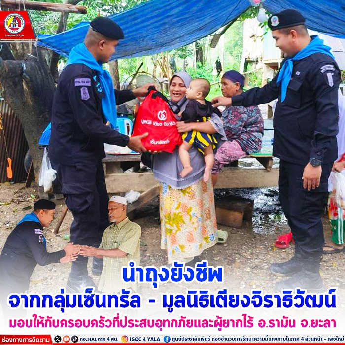 เมื่อวันที่ 25 มกราคม 2567 เวลา 13.00 น. หน่วยเฉพาะกิจกรมทหารพรานที่ 41 โดย ชุดปฏิบัติการกิจการพลเรือน กองร้อยทหารพรานหน่วยขึ้นตรง ลงพื้นที่พบปะเยี่ยมเยียนครัวเรือนของผู้ประสบอุทกภัยและผู้ยากไร้ในพื้นที่ อำเภอรามัน จังหวัดยะลา เพื่อมอบสิ่งของอุปโภคบริโภค ที่ได้รับการสนับสนุนจากจากกลุ่มเซ็นทรัล – มูลนิธิเตียงจิราธิวัฒน์ เพื่อเป็นการบรรเทาความเดือดร้อน และเป็นการสร้างขวัญกำลังใจให้กับประชาชนผู้ประสบอุทกภัยและผู้ยากไร้ในพื้นที่ อำเภอรามัน จังหวัดยะลา