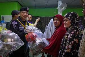 เมื่อวันที่ 26 มกราคม 2567 เวลา 14.00 น. ที่ทำการผู้ใหญ่บ้าน หมู่ที่ 8 บ้านกำบงปาเร๊ะ ตำบลมะรือโบตก จังหวัดนราธิวาส พันเอก สุรศักดิ์ พึ่งแย้ม ผู้บังคับหน่วยเฉพาะกิจกรมทหารพรานที่ 45 ร่วมให้การต้อนรับ คุณสมฤดี ขำเขียว ประธานสมาคมแม่บ้านทหารบก สาขา กองพลทหารราบที่ 15 และคณะ ในโอกาสเดินทางลงพื้นที่เพื่อเข้าเยี่ยมมอบความห่วงใย และให้กำลังใจให้กับพี่น้องประชาชนผู้ประสบอุทกภัยในพื้นที่ พร้อมมอบอุปกรณ์เครื่องครัว เครื่องอุปโภคบริโภค และยาเวชภัณฑ์ เพื่อบรรเทาความเดือดร้อนให้แก่พี่น้องประชาชนผู้ประสบอุทกภัย จำนวน 100 ชุด โดยมีส่วนราชการ ผู้บังคับกองร้อยในพื้นที่ ผู้นำหมู่บ้าน และประชาชนในพื้นที่ร่วมให้การต้อนรับ