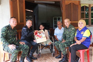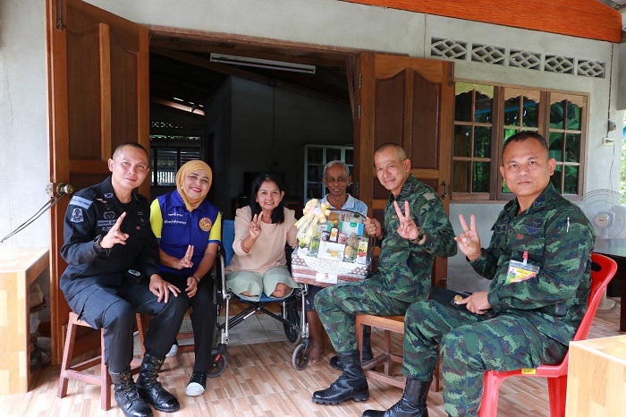 เมื่อวันที่ 27 มกราคม 2567 เวลา 09.30 น.ที่บ้านเลขที่ 35 หมู่ที่ 2 บ้านโคกโก ตำบลโต๊ะเด็ง อำเภอสุไหงปาดี จังหวัดนราธิวาส พลตรี เฉลิมพร ขำเขียว ผู้บัญชาการกองพลทหารราบที่ 15 / ผู้บังคับหน่วยเฉพาะกิจนราธิวาส / ผู้อำนวยการศูนย์ประสานงานโครงการอันเนื่องมาจากพระราชดำริ พร้อมส่วนราชการในพื้นที่ เดินทางเข้าเยี่ยมเยียน ให้กำลังใจ “ป้านิ่ม” นางประทุม นักทอง หญิงแกร่งแห่งตำบลโต๊ะเด็ง โดย ป้านิ่ม เป็นประชาชนที่ได้รับบาดเจ็บสาหัส สูญเสียขาทั้งสองข้าง จากเหตุการณ์คนร้ายลอบวางระเบิดในสวนยางพาราพื้นที่หมู่ที่ 2 ตำบลโต๊ะเด็ง อำเภอสุไหงปาดี จังหวัดนราธิวาส เมื่อวันที่ 15 สิงหาคม 2565 ที่ผ่านมา จากวันนั้น จนถึงวันนี้ ผ่านมาเกือบ 2 ปี พลตรี เฉลิมพร ขำเขียว พร้อมด้วยส่วนราชการในพื้นที่ ยังคงห่วงใย โดยเป็นคนไข้ในพระบรมราชานุเคราะห์ และได้รับการใส่ขาเทียม ซึ่งป้านิ่มมีกำลังใจที่ดีเยี่ยม สามารถใช้ชีวิตได้ตามปกติ