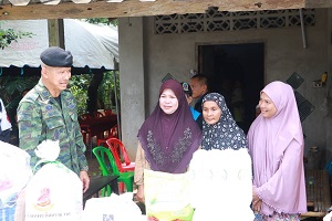 เมื่อวันที่ 27 มกราคม 2567 เวลา 10.00 น. ที่ บ้านเลขที่ 73 หมู่ 2 ตำบลเฉลิม อำเภอระแงะ จังหวัดนราธิวาส พลตรี เฉลิมพร ขำเขียว ผู้บัญชาการกองพลทหารราบที่ 15 / ผู้บังคับหน่วยเฉพาะกิจนราธิวาส พร้อมด้วย พันเอก สุรศักดิ์ พึ่งแย้ม ผู้บังคับหน่วยเฉพาะกิจกรมทหารพรานที่ 45 และส่วนราชการในพื้นที่ เดินทางเข้าเยี่ยม และให้กำลังใจ ครอบครัว ของนายนิกร สะเมาะ ซึ่งเป็นบุคคลสูญหาย จากสถานการณ์อุทกภัยในพื้นที่ อำเภอระแงะ จังหวัดนราธิวาส เมื่อวันที่ 24 ธันวาคม 2566 ที่ผ่านมา และปัจจุบัน ยังไม่พบผู้สูญหาย