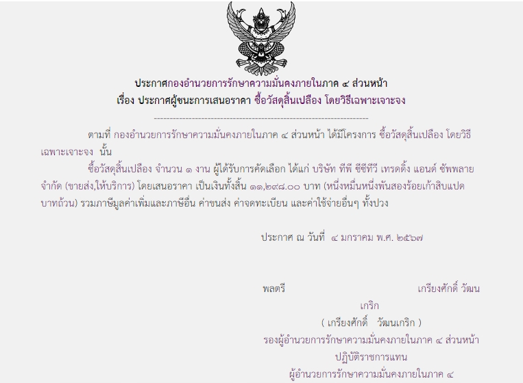 จัดซื้อ จัดจ้างประกาศผู้ชนะการเสนอราคา ประกาศผู้ชนะการเสนอราคา ซื้อวัสดุสิ้นเปลือง โดยวิธีเฉพาะเจาะจง January 31, 2024 309 Share Facebook Twitter Google+ Telegram LINE