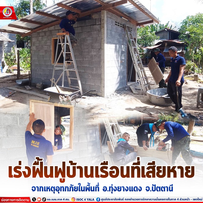 เมื่อวันที่ 30 มกราคม 2567 เวลา 09.00 น. กองพันทหารราบที่ 1 กรมทหารราบที่ 153 นำกำลังพลจิตอาสาพระราชทานพร้อมด้วยชุดช่างของหน่วย เข้าฟื้นฟูซ่อมแซมบ้านเรือนที่เสียหายจากเหตุอุทกภัยในพื้นที่ อำเภอทุ่งยางแดง จังหวัดปัตตานี ในห้วงที่ผ่านมา โดยได้จัดชุดช่างของหน่วย ร่วมกับ ชุดช่างกองร้อยทหารพรานที่ 4402 หน่วยเฉพาะกิจกรมทหารพรานที่ 44 ร่วมสนับสนุน ชุดช่างของหน่วยพัฒนาการเคลื่อนที่ 44 เข้าทำการสร้างบ้านพักอาศัย หลังใหม่ให้กับประชาชนที่ได้รับความเสียหาย