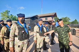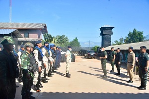 ทั้งนี้ พลตรี เฉลิมพร ขำเขียว ผู้บัญชาการกองพลทหารราบที่ 15 เข้ารับฟังการบรรยายสรุปโครงสร้าง ชุดคุ้มครองตำบล, พื้นที่รับผิดชอบ, การแผนการรักษาความปลอดภัยตำบล / หมู่บ้าน การตั้งจุดตรวจ จุดสกัด, แผนป้องกันเหตุ, แผนเผชิญเหตุ, แผนป้องกันเหตุแผนการปฏิบัติการเมื่อมีภาพข่าวสาร ความเคลื่อนไหวของกลุ่มผู้ก่อเหตุรุนแรง, แผนระงับเหตุโดยดำเนินการตามกรอบแนวทางยุทธศาสตร์ประชาชนมีส่วนร่วม, การแก้ไขข้อบกพร่องตามเกณฑ์มาตรฐาน 5 ด้าน ทั้งด้านกายภาพ, ด้านกำลังคน, ด้านการปฏิบัติงานด้านข้อมูลพื้นฐานของพื้นที่, ด้านความเข้มแข็งของชุมชน พร้อมทั้งได้สอบถามปัญหา ข้อขัดข้องในการปฎิบัติงาน รวมถึงสถานการณ์ในพื้นที่ และมอบนโยบายมาตรการความปลอดภัยของกำลังพล การปฎิบัติงานด้วยความระมัดระวัง ไม่ประมาท เพื่อไม่ให้ตกเป็นเป้าหมาย รวมถึงการซักซ้อมแผนเผชิญเหตุ การรักษาความปลอดภัยฐานปฏิบัติการฯ “ตามหลักการปฏิบัติ 3 นอก 4 ใน” โดยหลักการปฏิบัติตามแบบ “3 นอก 4 ใน” แบ่งออกเป็น 3 นอก คือ การลาดตระเวนรอบฐานฯ, การตั้งจุดตรวจหน้าฐานฯ, การนอนนอกฐานปฏิบัติการฯ ส่วน 4 ใน คือ การซักซ้อมแผนฯ, การตรวจการจากหอสูง, การเข้าประจำแนว, การเข้าเวรยามตลอด 24 ชั่วโมง ที่สำคัญให้ปฏิบัติตามนโยบายสั่งการ ของพลโท ศานติ ศกุนตนาค แม่ทัพภาคที่ 4 / ผู้อำนวยการรักษาความมั่นคงภายในภาค 4 และให้กำลังใจแก่เจ้าหน้าที่ให้มีความอดทนปฏิบัติหน้าที่เพื่อดูแลรักษาความปลอดภัยแก่พี่น้องประชาชนในพื้นที่อย่างเต็มความสามารถ ขอให้ทุกคนไม่ประมาท ให้ใช้ความระมัดระวัง และมีความพร้อมในการใช้อาวุธประจำกายอยู่ตลอดเวลา มาตรการป้องกันฐานปฏิบัติการต้องมีความพร้อม ที่สำคัญต้องมีการติดตามข้อมูลด้านการข่าวต่อเหตุที่อาจจะเกิดขึ้นได้ตลอดเวลาอย่างต่อเนื่อง เน้นย้ำให้มีการซักซ้อมแผนฉุกเฉินกรณีเกิดเหตุต่างๆ อย่างเข้มงวด และมีความรู้ความเข้าใจในแผนการปฏิบัติงานเป็นอย่างดี และประสิทธิภาพสามารถเดินหน้าขับเคลื่อนการปฎิบัติงานได้ด้วยตนเองในอนาคตต่อไป ในการนี้ พลตรี เฉลิมพร ขำเขียวได้มอบสิ่งของอุปโภค-บริโภค ให้แก่กำลังพล เพื่อสร้างขวัญกำลังใจที่ดีในการปฏิบัติหน้าที่ต่อไป