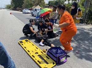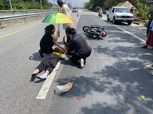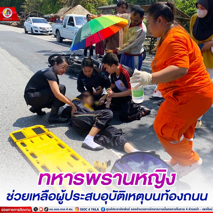 วันนี้ (1 กุมภาพันธ์ 2567) เวลา 12.30 น. ทหารพรานหญิง (สังกัด กองกำลังทหารพรานจังหวัดชายแดนภาคใต้) ขณะเดินทางกลับจากการปฏิบัติภารกิจในพื้นที่ ระหว่างทาง บริเวณทางลงสะพานตะลุโบะ อำเภอเมือง จังหวัดปัตตานี ได้พบน้องนักเรียนหญิงประสบอุบัติเหตุ ถูกรถเฉี่ยวชนจนทำให้ได้รับบาดเจ็บ เจ้าหน้าที่จึงได้เร่งเข้าให้การช่วยเหลือทันที โดยการปฐมพยาบาลเบื้องต้น และได้โทรแจ้งกับหน่วยกู้ภัยในพื้นที่เข้าให้การช่วยเหลือ นำตัวน้องนักเรียนส่งโรงพยาบาลปัตตานีด้วยความปลอดภัย