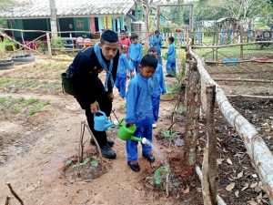 หน่วยเฉพาะกิจกรมทหารพรานที่ 47 ลงพื้นที่โรงเรียนบ้านวังสำราญ บ้านกูแบรายอ (หมู่บ้านสันติสุข) หมู่ที่ 4 ตำบลละแอ อำเภอยะหา จังหวัดยะลา เพื่อพบปะพูดคุยกับบุคลากรทางการศึกษาของโรงเรียน รวมทั้งให้ความรู้การทำเกษตรพอเพียงภายในโรงเรียน การสาธิตการปลูกผักปลอดสารพิษ เป็นการสร้างรายได้ลดรายจ่ายโครงการอาหารกลางวันของโรงเรียนและเด็ก ๆ ได้รับประทานอาหารที่เป็นประโยชน์ต่อร่างกาย ทั้งนี้ กำลังพลของหน่วยได้สาธิตทำเกษตรพอเพียง เพื่อให้นักเรียนได้เข้าใจถึงขั้นตอนต่าง ๆ ในแปลงเกษตรสาธิตของโรงเรียน