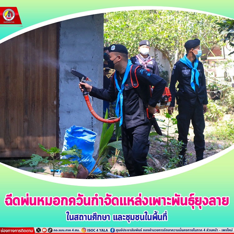 หน่วยเฉพาะกิจกรมทหารพรานที่ 22 โดย กองร้อยทหารพรานที่ 2208 จัดชุดปฏิบัติการพลเรือน ร่วมกับ โรงพยาบาลส่งเสริมสุขภาพตำบลระแว้ง อำเภอยะรัง จังหวัดปัตตานี ลงพื้นที่พ่นหมอกควันกำจัดยุงลาย สืบเนื่องจากมีการตรวจพบว่าราษฎร์ในพื้นที่ เนื่องจากมีผู้ป่วยเป็นโรคไข้เลือดออกจำนวนมาก จึงได้ประสานโรงพยาบาลส่งเสริมสุขภาพตำบลระแว้ง จัดเจ้าหน้าที่ให้คำแนะนำเกี่ยวกับการรักษาสุขภาพ และวิธีการป้องกันโรคไข้เลือดออก การกำจัดลูกน้ำยุงลาย ซึ่งเป็นพาหะนำโรคให้กับชาวบ้าน และเข้าฉีดเพิ่มเติมในสถานศึกษาในพื้นที่โดยรอบบริเวณที่พบการระบาดของโรคไข้เลือดออก ตามมาตรการของกระทรวงสาธารณสุข
