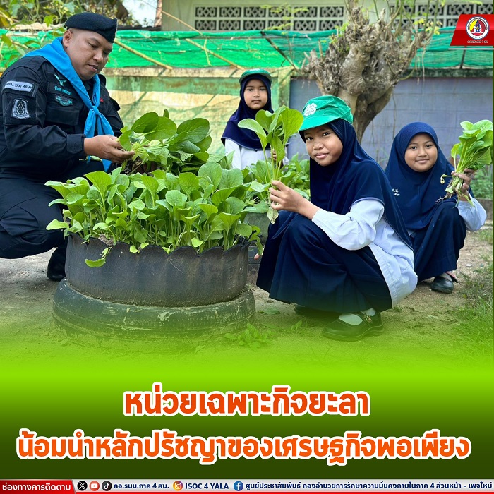 เมื่อวันที่ 5 กุมภาพันธ์ 2567 เวลา 09.00 น. พลตรี นิติ ติณสูลานนท์ ผู้บังคับหน่วยเฉพาะกิจยะลา มอบหมายให้ชุดปฏิบัติการกิจการพลเรือนกองร้อยทหารพรานที่ 4112 ดำเนินการขับเคลื่อนโครงการฯ ร่วมกับคณะกรรมการโรงเรียน, ผอ.สถานศึกษา, คณะครู, นักเรียน, กลุ่มยุวเกษตรกรโรงเรียนบ้านกาดือแป “โครงการส่งเสริมการเรียนรู้ตามหลักปรัชญาของเศรษฐกิจพอเพียง ตามแนวพระราชดำริ” เยี่ยมชมแปลงเกษตร พร้อมมอบงบประมาณสนับสนุนการขับเคลื่อนโครงการฯ ซึ่งได้รับงบประมาณจาก หน่วยเฉพาะกิจยะลา เพื่อการจัดซื้ออุปกรณ์ทางการเกษตร, เมล็ดพันธุ์ผัก และปรับปรุงแปลงเกษตร