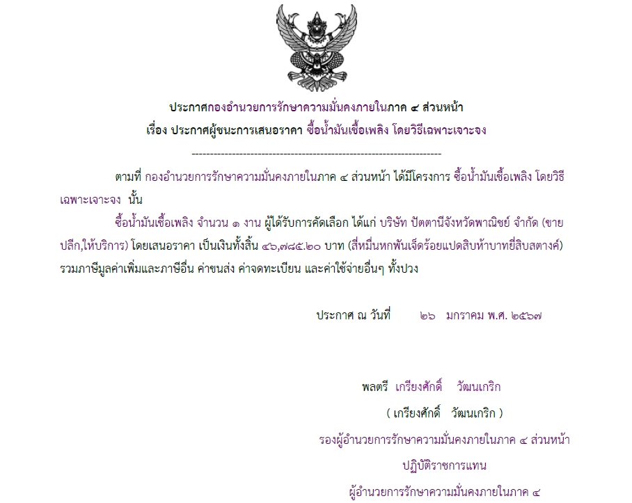 จัดซื้อ จัดจ้างประกาศผู้ชนะการเสนอราคา ประกาศผู้ชนะการเสนอราคา ซื้อน้ำมันเชื้อเพลิง โดยวิธีเฉพาะเจาะจง February 7, 2024 319 Share Facebook Twitter Google+ Telegram LINE