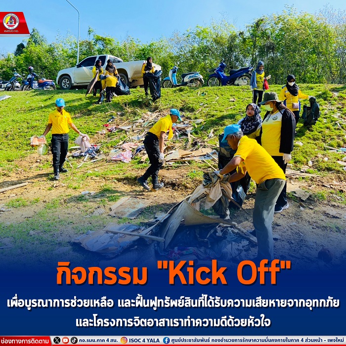 เมื่อวันที่ 6 กุมภาพันธ์ 2567 เวลา 09.00 น. หน่วยเฉพาะกิจกรมทหารพรานที่ 41 โดย ชุดปฏิบัติการกิจการพลเรือน กองร้อยทหารพรานที่ 4115 ร่วมกับ ผู้บังคับหน่วยพัฒนาการเคลื่อนที่ 42 ยะลา, โยธาธิการและผังเมืองยะลา, ผู้บัญชาการเรือนจำจังหวัดยะลา, หัวหน้าสำนักงานป้องกันและบรรเทาสาธารณภัยจังหวัดยะลา และหน่วยงานที่เกี่ยวข้องและประชาชนจิตอาสาในพื้นที่ตำบลอาซ่อง อำเภอรามัน จังหวัดยะลา ร่วมจัดกิจกรรม “kick off” และโครงการจิตอาสาเราทำดีด้วยหัวใจ ประจำเดือน กุมภาพันธ์ 2567 ร่วมพัฒนาปรับปรุงภูมิทัศน์ เก็บขยะ 2 ข้างทาง เส้นทางตั้งแต่ หมู่ที่ 1 บ้านกือเม็ง ถึง หมู่ที่ 5 บ้านสะโต เพื่อเป็นการเสริมสร้างทัศนียภาพที่สวยงาม และเป็นการแสดงถึงความสามัคคี ความร่วมมือร่วมใจ เป็นการเสริมสร้างความสัมพันธ์อันดีระหว่างหน่วยงานกับชุมชนในพื้นที่