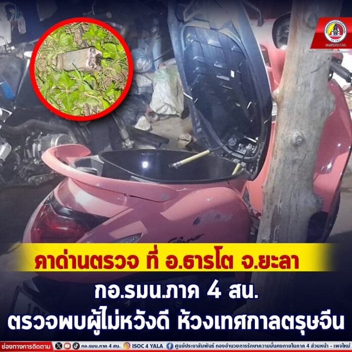 พันเอก เอกวริทธิ์ ชอบชูผล โฆษกกองอำนวยการรักษาความมั่นคงภายในภาค 4 ส่วนหน้า ระบุถึงเหตุการณ์เมื่อวันที่ 9 กุมภาพันธ์ 2567 เวลา 21.00 น. ที่ผ่านมาว่าเจ้าหน้าที่ชุดคุ้มครองตำบลคีรีเขต อำเภอธารโต จังหวัดยะลา ได้ปฏิบัติหน้าที่ตั้งจุดตรวจจุดสกัด หน้าฐานปฏิบัติการ ต่อมาได้มีชายรายหนึ่งได้ขับขี่รถจักรยานยนต์ ยี่ห้อยามาฮ่า รุ่นฟีลาโน่ สีชมพู หมายเลขทะเบียน 1 กย 9651 ปัตตานี เข้ามาในบริเวณจุดตรวจ แต่มีอาการพิรุธและตื่นตระหนกเมื่อเจอเจ้าหน้าที่จุดตรวจ ด้วยความตกใจจึงได้ขับขี่รถจักรยานยนต์เสียหลักล้มลง เจ้าหน้าที่จึงรีบได้เข้าช่วยเหลือผู้บาดเจ็บอย่างทันที พร้อมนำส่งโรงพยาบาลธารโต เพื่อทำการรักษา โดยทราบชื่อผู้บาดเจ็บ คือ นายมูหัมหมัดสุกรี แวเลาะ อายุ 31 ปี ภูมิลำเนาอยู่ที่บ้านผ่านศึก หมู่ที่ 2 ตำบลคีรีเขต อำเภอธารโต จังหวัดยะลา