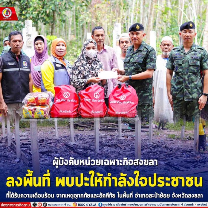 ทั้งนี้ผู้บังคับหน่วยเฉพาะกิจสงขลา มอบหมายให้ หน่วยเฉพาะกิจสงขลา 40 เตรียมการช่วยเหลือในการสร้างบ้านให้กับครอบครัวผู้ประสบอัคคีภัยต่อไป