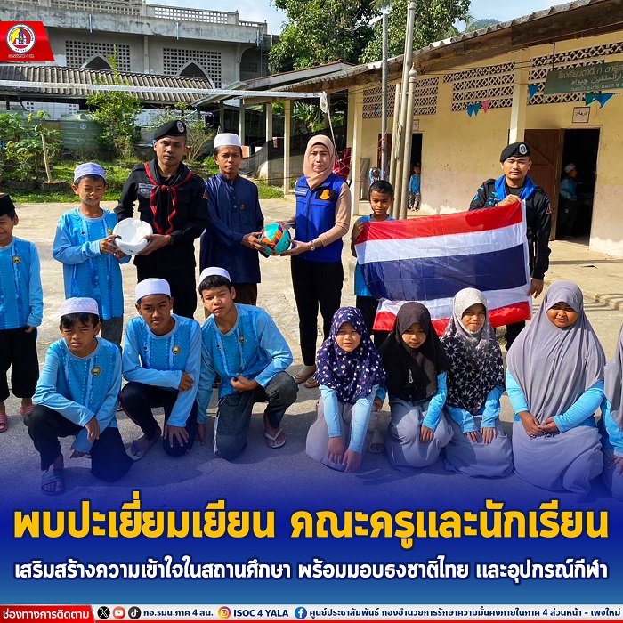 เมื่อวันที่ 11 กุมภาพันธ์ 2567 เวลา 09.30 น. ชุดเสริมสร้างความเข้าใจหน่วยเฉพาะกิจยะลาที่ 1 ร่วมกับ ชุดปฏิบัติการกิจการพลเรือน หน่วยเฉพาะกิจกรมทหารพรานที่ 47 ลงพื้นที่โรงเรียนตาดีกาดารูลมุตตากีน บ้านกูวิง หมู่ที่ 6 ตำบลบาโร๊ะ อำเภอยะหา จังหวัดยะลา เพื่อพบปะเยี่ยมเยียน คณะครูและนักเรียนของโรงเรียนตาดี โดยได้มีการมอบธงชาติไทย ก่อนทำการเปลี่ยนธงชาติไทยผืนใหม่ให้กับโรงเรียนแห่งนี้ เพื่อปลูกฝังอุดมการณ์ ความรักชาติ ศาสนา พระมหากษัตริย์ ที่สำคัญให้มีความรักใคร่และสามัคคีกัน แม้จะมีความต่างของสังคมพหุวัฒนธรรมระหว่างไทยพุทธและไทยมุสลิมในพื้นที่จังหวัดชายแดนภาคใต้ก็ตาม พร้อมทั้งยังได้สอดแทรกประวัติความเป็นมาของธงชาติไทย