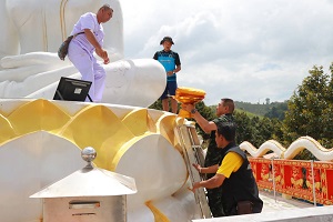 วันนี้ (12 มกราคม 2567) เวลา 13.20 น. ที่วัดวังใหม่ ตำบลอัยเยอร์เวง อำเภอเบตง จังหวัดยะลา พลโท ศานติ ศกุนตนาค แม่ทัพภาคที่ 4 / ผู้อำนวยการรักษาความมั่นคงภายในภาค 4 เป็นประธานฝ่ายฆราวาสพิธีบวงสรวงสร้างเทปูนหล่อองค์หลวงปู่ทวดเหยียบน้ำทะเลจืด ก่อนร่วมห่มผ้าพระพุทธชยันตีเมตตาทันใจโลกนาถ โดยมี พระสุนทรวิสุทธานุวัตร เป็นประธานฝ่ายสงฆ์ พร้อมด้วย พันจ่าโท อนันต์ บุญสำราญ รองผู้ว่าราชการจังหวัดยะลา, พลตรี นิติ ติณสูลานนท์ ผู้บังคับหน่วยเฉพาะกิจยะลา, นายอมร ชุมช่วย นายอำเภอเบตง, ผู้แทนส่วนราชการในพื้นที่ และพุทธศาสนิกชนในพื้นที่เข้าร่วม