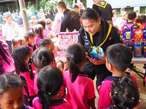 นอกจากนี้ หน่วยเฉพาะกิจกรมทหารพรานที่ 45 ยังได้จัดเตรียมไอศกรีม อมยิ้ม และขนมต่าง ๆ เพื่อนำมาแจกให้น้อง ๆ นักเรียน และคณะครู ที่ร่วมกิจกรรมในครั้งนี้ ได้รับประทานด้วยความสุข จากความรักที่พี่ ๆ ทหารมอบให้ โดยทุกคนต่างมีสีหน้ายิ้มแย้มแจ่มใส