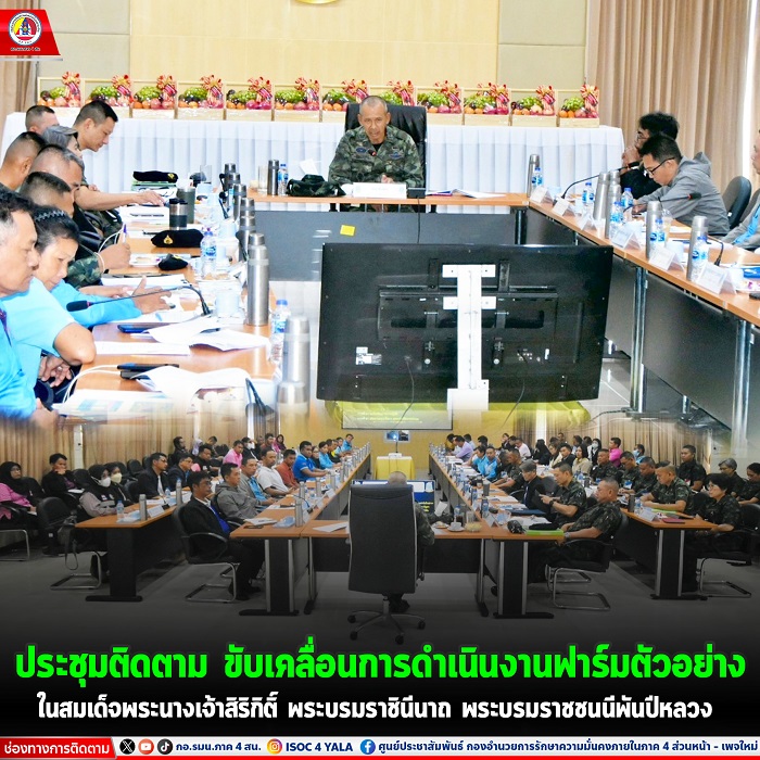 เมื่อวันที่ 13 กุมภาพันธ์ 2567 เวลา 1000 น. ที่ ห้องประศูนย์ประสานงานโครงการอันเนื่องมาจากพระราชดำริ ค่ายสมเด็จพระสุริโยทัย ตำบลบ่อทอง อำเภอหนองจิก จังหวัดปัตตานี พลตรี เฉลิมพร ขำเขียว ผู้บัญชาการกองพลทหารราบที่ 15 / ผู้อำนวยการศูนย์ประสานงานโครงการอันเนื่องมาจากพระราชดำริ เป็นประธานประชุมติดตามการขับเคลื่อนการดำเนินงาน สอบถามปัญหา ข้อขัดข้องในการบริหารจัดการ ของฟาร์มตัวอย่างในสมเด็จพระนางเจ้าสิริกิติ์ พระบรมราชินีนาถ พระบรมราชชนนีพันปีหลวง ในความรับผิดชอบ จำนวน 16 ฟาร์มตัวอย่างฯพร้อมทั้งมอบนโยบายการบริหารจัดการภายในฟาร์มตัวอย่างฯ จากผู้บังคับบัญชามายังกำลังพลและสมาชิกฟาร์มตัวอย่างฯ ทุกคนให้ดำเนินการตามกรอบนโยบายที่กำหนด มุ่งเน้นการฝึกทักษะ ให้ความรู้แก่สมาชิกฟาร์มฯ ได้ต่อยอด สร้างอาชีพ เพิ่มรายได้แก่ตนเองและครอบครัว ภายใต้การพึ่งพาตนเอง ควบคู่กับการวบริหารจัดการฟาร์มให้ดำรงอยู่ได้อย่างยั่งยืนตลอดไป