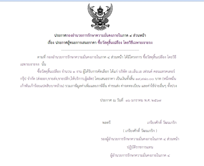 จัดซื้อ จัดจ้างประกาศผู้ชนะการเสนอราคา ประกาศผู้ชนะการเสนอราคา ซื้อวัสดุสิ้นเปลือง โดยวิธีเฉพาะเจาะจง February 15, 2024 398 Share Facebook Twitter Google+ Telegram LINE