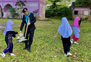 เมื่อวันที่ 18 กุมภาพันธ์ 2567 เวลา 08.00 น. ณ ศูนย์การศึกษาอิสลามประจำมัสยิด (ตาดีกา) อัตตัรบียาตูลอิสลามียะห์ยือนือเร๊ะ ตำบลจะกว๊ะ อำเภอรามัน จังหวัดยะลา หน่วยเฉพาะกิจกรมทหารพรานที่ 41 โดย ชุดปฏิบัติการกิจการพลเรือน กองร้อยทหารพรานที่ 4109 ร่วมกับคณะครู และนักเรียน จัดกิจกรรมเคารพธงชาติหน้าเสาธง 5 นาที นำนักเรียนร้องเพลงชาติ เชิญธงชาติขึ้นสู่ยอดเสา ร้องเพลงสรรเสริญพระบารมี เพื่อปลุกจิตสำนึกให้เด็ก เยาวชน มีความรักชาติ ศาสนา และสถาบันพระมหากษัตริย์ พร้อมทั้งเปลี่ยนธงชาติผืนใหม่ให้กับสถานศึกษา รวมถึงให้ความรู้เกี่ยวกับประวัติศาสตร์ความเป็นมาของ “ธงไตรรงค์ ธงชาติไทย” เพื่อให้นักเรียนได้รู้ถึงความหมายและความสำคัญของธงชาติไทย