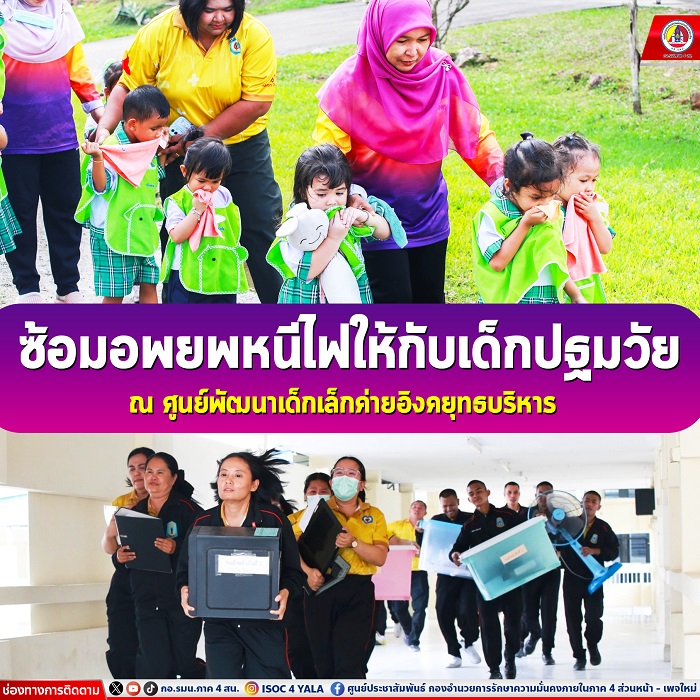 เมื่อวันที่ 15 กุมภาพันธ์ 2567 เวลา 09.00 น. โรงพยาบาลค่ายอิงคยุทธบริหาร ร่วมกับ ศูนย์พัฒนาเด็กเล็กค่ายอิงคยุทธบริหาร จัดกิจกรรมการป้องกันอัคคีภัยและการซักซ้อมอพยพหนีไฟ เพื่อเสริมสร้างทักษะความปลอดภัยสำหรับเด็กปฐมวัย ให้เด็ก ๆ เข้าใจในการปฏิบัติตน ในกรณีเกิดอัคคีภัย ได้มีการจำลองเหตุการณ์ เกิดเพลิงไหม้ เรียนรู้สัญลักษณ์สีธง ป้ายทางหนีไฟ และชี้แจงแนวทางปฏิบัติตนให้ปลอดภัยจากจุดเกิดเหตุในกรณีต่างๆ โดยมีการฝึกซ้อม เริ่มตั้งแต่การฟังเสียงสัญญาณแจ้งเหตุเพลิงไหม้ และการเคลื่อนย้ายนักเรียนขณะเกิดอัคคีภัยไปยังจุดรวมพล ณ ศูนย์พัฒนาเด็กเล็กค่ายอิงคยุทธบริหาร จังหวัดปัตตานี