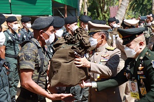 ในการนี้ พลเอก ไพบูลย์ คุ้มฉายา องคมนตรี ได้กล่าวว่า ครั้งนี้ได้นำพระราชกระแสความห่วงใยของพระบาทสมเด็จพระเจ้าอยู่หัว และสมเด็จพระนางเจ้าฯ พระบรมราชินี ให้กระผมได้อัญเชิญสิ่งของพระราชทานมามอบให้ เจ้าหน้าที่ที่ได้รับผลกระทบจากสถานการณ์ และกำลังพลที่ทำหน้าที่ในพื้นที่จังหวัดชายแดนภาคใต้ เพื่อเป็นขวัญและกำลังใจ ทั้งนี้ พระบาทสมเด็จพระเจ้าอยู่หัว และสมเด็จพระนางเจ้าฯ พระบรมราชินี ทรงห่วงใย ติดตาม ช่วยเหลือ สนับสนุน พร้อมทั้งทรงพระราชทานกำลังใจ ทรงขอบใจ และชื่นชมครอบครัวของเจ้าหน้าที่ที่เสียสละ และสนับสนุนอยู่เบื้องหลังในการปฏิบัติหน้าที่ จำเป็นต้องมีแผน เช่น แผนเผชิญเหตุ แผนระวังป้องกัน เพื่อรองรับในการแก้ไขปัญหาสถานการณ์ต่าง ๆ ปฏิบัติงานต้องมีสติ รู้ตัว ด้วยปัญญา มีเหตุ มีผล ก็จะทำให้ภารกิจสำเร็จได้การทำงานใด ๆ ย่อมผิดพลาดได้เสมอ หากแต่นำข้อผิดพลาดนั้นมาเรียนรู้ หากเกิดขึ้นอีกจะไม่มีความเสียหายเกิดขึ้น หรือเกิดขึ้นเพียงเล็กน้อย
