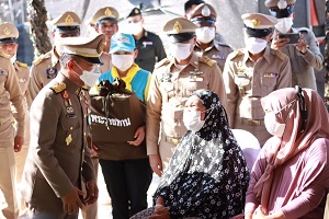 ก่อนเดินทางกลับ องคมนตรี และคณะฯ เดินทางยังฐานปฏิบัติการคุ้มครองตำบลแป้น อำเภอสายบุรี จังหวัดปัตตานี เพื่อเชิญสิ่งของพระราชทานจำนวน 30 ชุด มอบแก่เจ้าหน้าที่ปฏิบัติภารกิจ เพื่อเป็นขวัญกำลังใจ จากเหตุการณ์ เมื่อวันที่ 26 พฤศจิกายน 2566 และวันที่ 22 มกราคม 2567 โดยมี พลโท ปราโมทย์ พรหมอินทร์ แม่ทัพน้อยที่ 4 / รองผู้อำนวยรักษาความมั่นคงภายในภาค 4 ส่วนหน้า, รองผู้ว่าราชการจังหวัดปัตตานี, ผู้บังคับหน่วยเฉพาะกิจปัตตานี, นายอำเภอ ตลอดจนหัวหน้าส่วนราชการ และกำลังพลให้การต้อนรับ