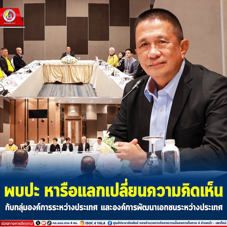 วันนี้ (22 กุมภาพันธ์ 2567) เวลา 09.00 น. ณ โรงแรม ลากูนา แกรนด์ โฮเทล แอนด์ สปา อำเภอเมือง จังหวัดสงขลา พลโท ปราโมทย์ พรหมอินทร์ แม่ทัพน้อยที่ 4 / รองผู้อำนวยการรักษาความมั่นคงภายในภาค 4 ส่วนหน้า / ผู้อำนวยการศูนย์สันติวิธี เป็นประธานการประชุม เพื่อแลกเปลี่ยนความคิดเห็นกับกลุ่มองค์การระหว่างประเทศ และองค์การพัฒนาเอกชนระหว่างประเทศ โดยมี ผู้แทนองค์การระหว่างประเทศและองค์การพัฒนาเอกชนระหว่างประเทศ ตลอดจนผู้แทนจาก กองอำนวยการรักษาความมั่นคงภายในภาค 4 ส่วนหน้า เข้าร่วมประชุม