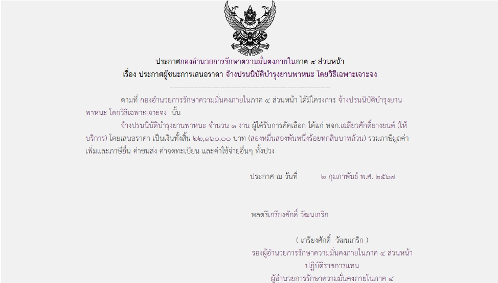 จัดซื้อ จัดจ้างประกาศผู้ชนะการเสนอราคา ประกาศผู้ชนะการเสนอราคา จ้างปรนนิบัติบำรุงยานพาหนะ โดยวิธีเฉพาะเจาะจง February 22, 2024 411 Share Facebook Twitter Google+ Telegram LINE