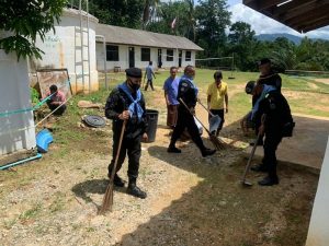 หน่วยเฉพาะกิจกรมทหารพรานที่ 49 ร่วมกับผู้นำศาสนา, ประชาชนจิตอาสา และประชาชนในพื้นที่ บ้านกีแย หมู่ที่ 4 ตำบลซากอ อำเภอศรีสาคร จังหวัดนราธิวาส ร่วมกันพัฒนาปรับปรุงภูมิทัศน์และทำความสะอาดมัสยิดซอลาฮุดดีน เพื่อพัฒนาคุณภาพชีวิตความเป็นอยู่ให้ดีขึ้น พร้อมทั้งได้แจกข้าวกล่องให้กับประชาชนที่มาร่วมพัฒนาในครั้งนี้อีกด้วย