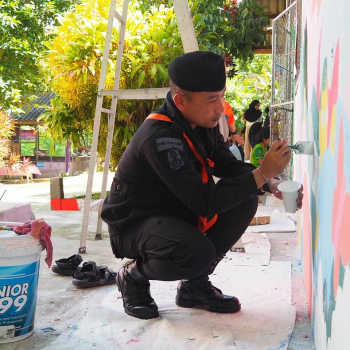 หน่วยเฉพาะกิจกรมทหารพรานที่ 46 ร่วมกับ ผู้นำท้องที่, ผู้นำท้องถิ่น, คณะบุคลากรทางการศึกษา, ประชาชนในพื้นที่ และ คณะนักศึกษามหาวิทยาลัยสงขลานครินทร์ วิทยาเขตปัตตานี จัดกิจกรรมบำเพ็ญสาธารณะประโยชน์ตามโครงการแบ่งปันรอยยิ้ม ครั้งที่ 8 “Give For You รอยยิ้มสร้างฝันแบ่งปันเพื่อเธอ”