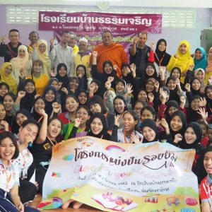 โดยร่วมกันสร้างฝายชะลอน้ำ วาดภาพฝาผนัง และทาสีสนามกีฬา ทาสีอาคารเรียน ที่โรงเรียนบ้านธรรมเจริญ หมู่ที่ 6 ตำบลโคกสะตอ อำเภอเรือเสาะ จังหวัดนราธิวาส เพื่อส่งเสริมการรักษาความสะอาดในสถานศึกษาให้สวยงาม สร้างบรรยากาศในการเรียนรู้ นอกจากนี้ ยังเป็นการปลูกฝังสร้างจิตสำนึกให้นักศึกษามีจิตสาธารณะต่อส่วนรวม สังคม และประเทศชาติ