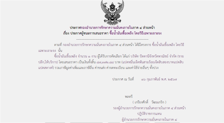 จัดซื้อ จัดจ้างประกาศผู้ชนะการเสนอราคา ประกาศผู้ชนะการเสนอราคา ซื้อน้ำมันเชื้อเพลิง โดยวิธีเฉพาะเจาะจง February 27, 2024 285 Share Facebook Twitter Google+ Telegram LINE