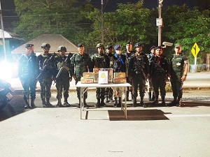 จากนั้น พลตรี เฉลิมพร ขำเขียว และคณะ ได้เดินทางไปตรวจเยี่ยมด่านตรวจความมั่นคง บ้านน้ำตก ตำบลปาเสมัส อำเภอสุไหงโก-ลก จังหวัดนราธิวาส ได้พบปะ และสั่งการให้ เจ้าหน้าที่ชุดปฎิบัติการ เพิ่มมาตรการคุมเข้มตลอดแนวชายแดน สกัดกั้นพื้นที่รับผิดชอบ เพิ่มมาตรการในการลาดตระเวน โดยให้หน่วยได้บูรณาการ การปฏิบัติงานร่วมกันกับทุกภาคส่วนในการบังคับใช้กฎหมายตามแนวชายแดนไทย – มาเลเซีย อย่างเข้มงวด เสริมกำลังตามแนวชายแดน โดยเฉพาะช่องทางที่มีชุมชนหรือหมู่บ้านอาศัยอยู่ใกล้แนวชายแดน การจัดตั้งจุดตรวจ/จุดสกัด และการจัดตั้งแหล่งข่าว เพื่อเพิ่มประสิทธิภาพในการสกัดกั้นการกระทำผิดกฎหมายตามแนวชายแดน โดยบูรณาการทํางานกับศูนย์ปฏิบัติการอําเภอ การป้องกัน สกัดกั้นชายแดน โดยกําชับในเรื่องการควบคุมบุคคล อาวุธ วัตถุระเบิด ยาเสพติด และสิ่งผิดกฎหมายต่าง ๆ ตามแนวชายแดน ไม่ให้เข้ามาในพื้นที่โดยเด็ดขาด พร้อมทั้ง ได้เน้นย้ำให้หน่วยปฏิบัติงานตามนโยบายของ พลโท ศานติ ศกุนตนาค แม่ทัพภาคที่ 4/ผู้อำนวยการรักษาความมั่นคงภายในภาค 4 โดยได้ให้คำแนะนำในการควบคุมพื้นที่ให้เกิดความปลอดภัยสูงสุด ตลอดจนได้มอบเครื่องอุปโภค-บริโภค เพื่อเป็นขวัญกำลังใจแก่กำลังพลต่อไป