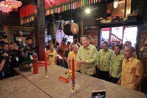 ต่อมา เวลา 16.00 น. นายเศรษฐา ทวีสิน นายกรัฐมนตรีเดินทางเยี่ยมชมสถานที่ท่องเที่ยวเมืองปัตตานี ได้แก่ บ้านขุนพิทักษ์รายา บ้านเลขที่ 5 กือดาจีนอ ตลาดวัฒนธรรมกือดาจีนอ ศาลเจ้าเล่งจูเกียง (เจ้าแม่ลิ้มกอเหนี่ยว) และ เยี่ยมชมมหกรรมท่องเที่ยวปัตตานีอาเซียน “กตัญญูคู่ฟ้ามหาสมโภชเจ้าแม่ลิ้มกอเหนี่ยวปัตตานี” ประจําปี 2567 ทั้งนี้ ระหว่างเดินเยี่ยมชม นายกรัฐมนตรี ได้รับฟังบรรยายสรุปประวัติของบ้านเลขที่ 5 กือดาจีนอ ตลอดจนเดินชมการท่องเที่ยวที่สำคัญด้านประวัติศาสตร์ ,ชมตลาดซงจื่อ ซึ่งเป็นสถานที่ขายเสื้อผ้าจีนบาติก โดยนายกฯ กล่าวชื่นชม และได้สอบถามเพิ่มเติมถึงการต่อยอดทำผ้าบาติกนอกเหนือจากเสื้อผ้าเพียงอย่างเดียว เพื่อเพิ่มรายได้ สร้างจุดขายมากขึ้น ในขณะเดียวกันนายกรัฐมนตรี ได้เข้าสักการะศาลเจ้าเล่งจูเกียง หรือ ศาลเจ้าแม่ลิ้มกอเหนี่ยว ในประเทศไทยซึ่งถือเป็นศาลเจ้าที่เก่าแก่ที่สุดในประเทศไทย กว่า 400 ปี จากนั้นได้สักการะสิ่งศักดิ์สิทธิ์ภายในศาลเจ้า เดินเยี่ยมชมสถาปัตยกรรมภายในศาลฯ และรับมอบรูปเคารพเจ้าแม่ลิ้มกอเหนี่ยว และร่วมรับชมการแสดงเชิดสิงโตบนเสาดอกเหมยของคณะที่ชนะเลิศในการแข่งขันเชิดสิงโต
