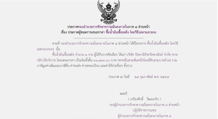 จัดซื้อ จัดจ้างประกาศผู้ชนะการเสนอราคา ประกาศผู้ชนะการเสนอราคา ซื้อน้ำมันเชื้อเพลิง โดยวิธีเฉพาะเจาะจง March 3, 2024 426 Share Facebook Twitter Google+ Telegram LINE