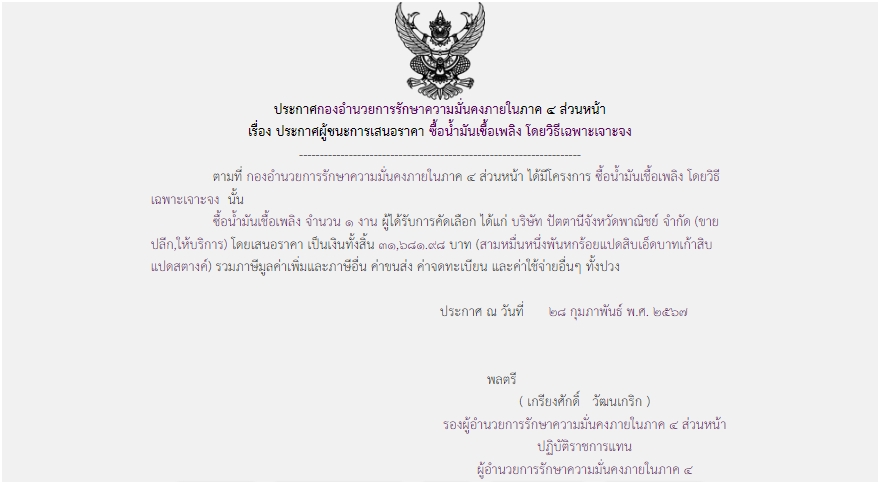 จัดซื้อ จัดจ้างประกาศผู้ชนะการเสนอราคา ประกาศผู้ชนะการเสนอราคา ซื้อน้ำมันเชื้อเพลิง โดยวิธีเฉพาะเจาะจง March 3, 2024 334 Share Facebook Twitter Google+ Telegram LINE