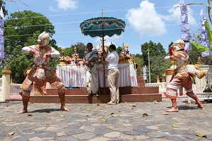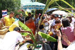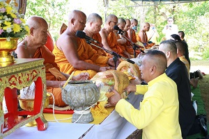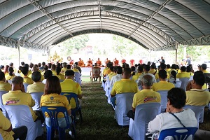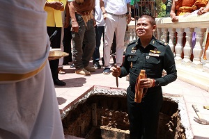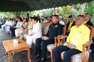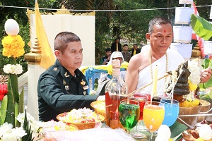 โอกาสนี้ พลตรี ไพศาล หนูสังข์ รองแม่ทัพภาคที่ 4/ รองผู้อำนวยการรักษาความมั่นคงภายในภาค 4 ส่วนหน้า ประธานในพิธี และคณะ จุดธูปเทียนที่โต๊ะบวงสรวง พร้อมปักธูปหางที่เครื่องสังเวย พราหมณ์อ่านโองการบวงสรวงดวงพระวิญญาณ สมเด็จพระเจ้าตากสินมหาราช เพื่อบอกกล่าววัตถุประสงค์ในการสร้างพระตำหนักถวาย ณ พระบรมราชานุสาวรีย์สมเด็จพระเจ้าตากสินมหาราช ณ วัดเขากง ตำบลลำภู อำเภอเมือง จังหวัดนราธิวาส