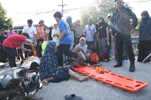 เมื่อถึงจุดเกิดเหตุ เจ้าหน้าที่ของหน่วยเฉพาะกิจกรมทหารพรานที่ 41 ได้ให้การช่วยเหลือ ปฐมพยาบาลเบื้องต้นให้กับผู้ได้รับบาดเจ็บ สอบถามอาการบาดเจ็บต่าง ๆ พร้อมทั้งประสานหน่วยงานที่เกี่ยวข้อง ก่อนนำผู้ได้รับบาดเจ็บส่งโรงพยาบาลรามันเพื่อเข้ารับการรักษาต่อไป