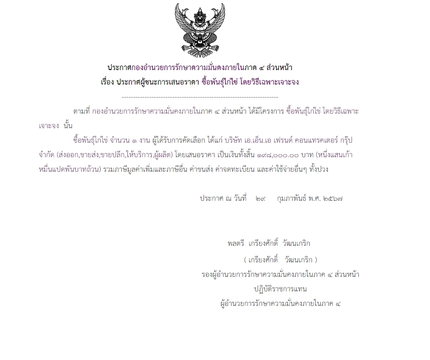 จัดซื้อ จัดจ้างประกาศผู้ชนะการเสนอราคา ประกาศผู้ชนะการเสนอราคา ซื้อพันธุ์ไก่ไข่ โดยวิธีเฉพาะเจาะจง March 7, 2024 495 Share Facebook Twitter Google+ Telegram LINE