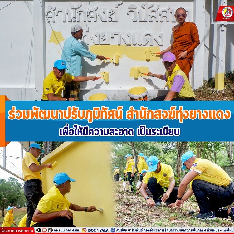 เมื่อวันที่ 9 มีนาคม 2567 เวลา 09.00 น. ที่ สำนักสงฆ์ทุ่งยางแดง หมู่ที่ 1 ตำบลตะโละแมะนา อำเภอทุ่งยางแดง จังหวัดปัตตานี พันเอก ภาคภูมิ จันทรักษ์ ผู้บังคับหน่วยเฉพาะกิจกรมทหาพรานที่ 44 พร้อมด้วยกำลังพลจิตอาสา ร่วมกับ ผู้นำศาสนา, ผู้นำในส่วนต่าง ๆ, ส่วนราชการฯ และประชาชนจิตอาสาฯ ในพื้นที่ ร่วมกิจกรรม “จิตอาสาฯ พัฒนาชุมชน” เพื่อช่วยกันพัฒนา และปรับปรุงภูมิทัศน์สถานที่ ที่สำคัญทางศาสนา โดยการทาสีบริเวณกำแพงสำนักสงฆ์ทุ่งยางแดง ให้มีความเป็นระเบียบ สะอาด เรียบร้อย และน่ามอง พร้อมทั้งได้ร่วมปลูกต้นไม้ เพื่อเป็นการเพิ่มพื้นที่สีเขียวให้กับชุมชน โดยมี นายรัฎฐา เนตรสว่าง นายอำเภอทุ่งยางแดง เป็นประธานในพิธีเปิด ซึ่งในการดำเนินการดังกล่าว เพื่อเป็นการสานสัมพันธ์อันดีระหว่างพี่น้องประชาชนในชุมชน กับเจ้าหน้าที่ทางภาครัฐ ภายใต้สังคมพหุวัฒนธรรมการอยู่ร่วมกันอย่างสันติสุข”