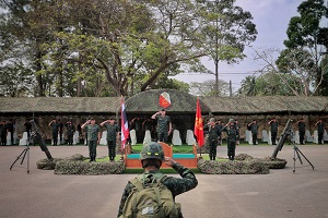 วันนี้ 13 มีนาคม 2567 ณ ลานพื้นแข็งศาลาเขตอุดมศักดิ์ ค่ายเขตอุดมศักดิ์ อำเภอเมือง จังหวัดชุมพร พลโท ศานติ ศกุนตนาค แม่ทัพภาคที่ 4 เป็นประธานตรวจสภาพความพร้อมรบก่อนเข้าการฝึกเป็นหน่วยกองพัน (พัน.ร.ผสม) กองพลทหารราบที่ 5 ประจำปี 2567 จัดขึ้น เพื่อตรวจสอบและประเมินความพร้อมของทั้งกำลังพล ยุทโธปกรณ์ ยานพาหนะ และเครื่องมือสื่อสารของหน่วย ตลอดจนความรู้ความเข้าใจในการปฏิบัติทางยุทธวิธี ให้เกิดความประสานสอดคล้องในการปฏิบัติระหว่างหน่วยประกอบกำลังต่าง ๆได้อย่างมีประสิทธิ์ภาพ พร้อมในการรองรับภารกิจของกองทัพบกได้อย่างเต็มขีดความสามารถ โดยมีพลตรี อภินันท์ แจ่มแจ้ง ผู้บัญชาการกองพลทหารราบที่ 5, ผู้บังคับหน่วยขึ้นตรงกองพลทหารราบที่ 5 ให้การต้อนรับ และร่วมคณะตรวจเยี่ยมสภาพความพร้อมในครั้งนี้