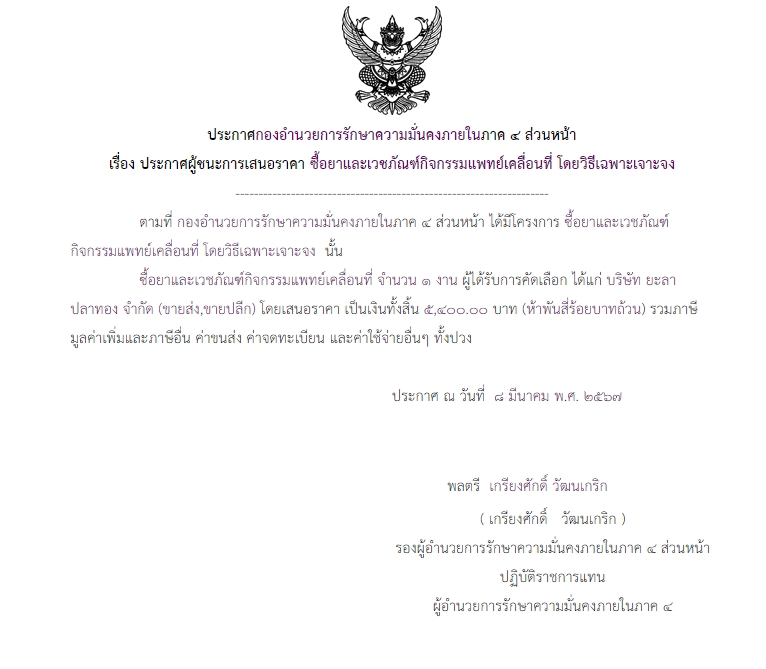 จัดซื้อ จัดจ้างประกาศผู้ชนะการเสนอราคา ประกาศผู้ชนะการเสนอราคา ซื้อยาและเวชภัณฑ์กิจกรรมแพทย์เคลื่อนที่ โดยวิธีเฉพาะเจาะจง March 13, 2024 360 Share Facebook Twitter Google+ Telegram LINE