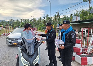 วันที่ 13 มีนาคม 2567 เวลา 17.30 น. หน่วยเฉพาะกิจกรมทหารพรานที่ 41 โดย ชุดปฏิบัติการกิจการพลเรือน กองร้อยทหารพรานที่ 4103 จัดกิจกรรมแจกอินทผลัมให้แก่พี่น้องชาวไทยมุสลิม ที่เดินทางสัญจรไป – มา ผ่านจุดตรวจหน้าฐานปฏิบัติการ กองร้อยทหารพรานที่ 4103 บ้านแบหอ หมู่ที่ 1 ตำบลกาลอ อำเภอรามัน จังหวัดยะลา เพื่อนำไปสำหรับละศีลอดในห้วงเดือนรอมฎอน ประจำปี ฮิจเราะห์ศักราช 1445 พร้อมทั้งได้ร่วมแสดงออกถึงความยินดีกับพี่น้องชาวไทยมุสลิม ที่ร่วมกันปฏิบัติศาสนกิจตามหลักศาสนาอิสลามอย่างเคร่งครัด ซึ่งสร้างรอยยิ้มและความประทับใจให้กับประชาชนที่สัญจรไป-มาในพื้นที่เป็นอย่างมาก