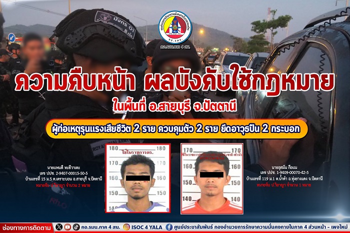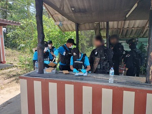 วันนี้ (14 มีนาคม 2567) เวลา 04.00 น. หน่วยปฏิบัติการพิเศษร่วม จังหวัดปัตตานี สนธิกำลังร่วมกับหน่วยที่เกี่ยวข้องประกอบด้วย หน่วยเฉพาะกิจกรมทหารพรานที่ 43 ,หน่วยเฉพาะกิจกรมทหารพรานที่ 44, ชุดปฏิบัติการ ศูนย์ปฏิบัติการตำรวจส่วนหน้า, สถานีตำรวจภูธรสายบุรี และเจ้าหน้าที่ฝ่ายปกครอง อำเภอสายบุรี จังหวัดปัตตานี ทำการบังคับใช้กฎหมาย ติดตามบุคคลเป้าหมาย ณ บ้านเช่า เลขที่ 192/1-3 บ้านลูโบะซูลง หมู่ที่ 10 ตำบลเตราะบอน อำเภอสายบุรี จังหวัดปัตตานี เนื่องจากได้รับแจ้งจากภาคประชาชนว่า พบบุคคลเป้าหมายเข้ามาพักพิงหลบซ่อนอยู่ภายในบ้านหลังดังกล่าว เพื่อเตรียมการก่อเหตุสร้างสถานการณ์ ในห้วงเดือนรอมฎอนอันประเสริฐของพี่น้องมุสลิม