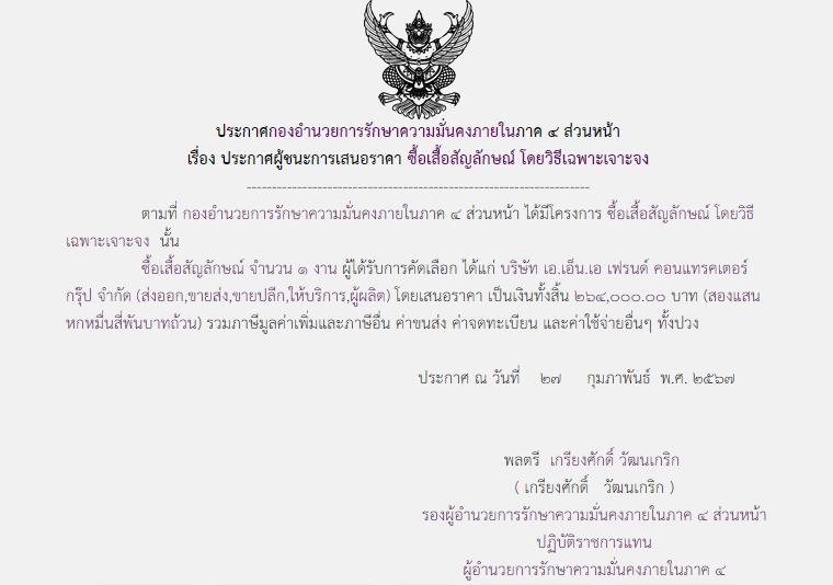 จัดซื้อ จัดจ้างประกาศผู้ชนะการเสนอราคา ประกาศผู้ชนะการเสนอราคา ซื้อเสื้อสัญลักษณ์ โดยวิธีเฉพาะเจาะจง March 14, 2024 514 Share Facebook Twitter Google+ Telegram LINE