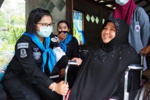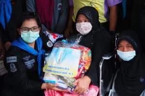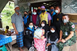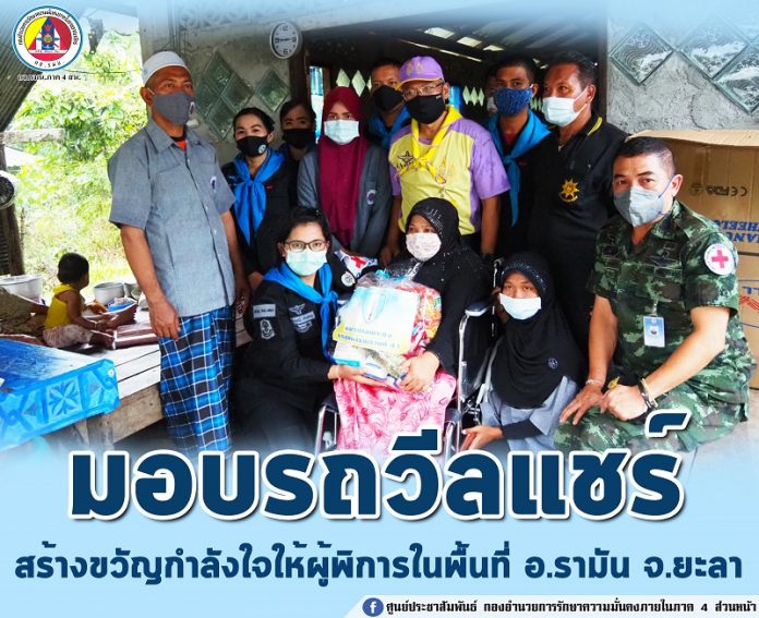 พันเอกนายแพทย์ โชคชัย ขวัญพิชิต รองผู้อำนวยการศูนย์อำนวยการแพทย์จังหวัดชายแดนภาคใต้ พร้อมด้วยชุดปฏิบัติการกิจการพลเรือนหน่วยเฉพาะกิจกรมทหารพรานที่ 41 ผู้นำชุมชน อาสาสมัครสาธารณสุขประจำหมู่บ้าน (อสม.) และทุกภาคส่วนที่เกี่วข้อง ลงพื้นที่บ้านเลขที่ 124 หมู่ที่ 4 บ้านป่าบอน ตำบลท่าธง อำเภอรามัน จังหวัดยะลา เพื่อพบปะเยี่ยมเยียนให้กำลังใจ นางสาวสีตีมารีแย บาซา ผู้ป่วยพิการในพื้นที่ตำบลท่าธง พร้อมมอบรถเข็นวีลแชร์ ซึ่งขยายผลต่อยอดตามโครงการ “หน่วยเฉพาะกิจยะลา ใส่ใจ ห่วงใย ประชาชนกลุ่มเปราะบาง” เพื่อเป็นการการอำนวยความสะดวกในชีวิตประจำวัน และการส่งเสริมให้คนพิการได้มีคุณภาพชีวิตที่ดีขึ้น โดยผู้พิการจะได้นำรถเข็นวีลแชร์ไปใช้ในการดำเนินชีวิตประจำวัน เพื่อให้สามารถเดินทางได้อย่างสะดวกสบายมากขึ้น ซึ่งสร้างรอยยิ้มและความประทับใจแก่ผู้พิการ และครอบครัวที่มารับมอบรถเข็นวีลแชร์ในครั้งนี้เป็นอย่างมาก